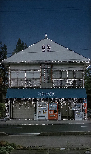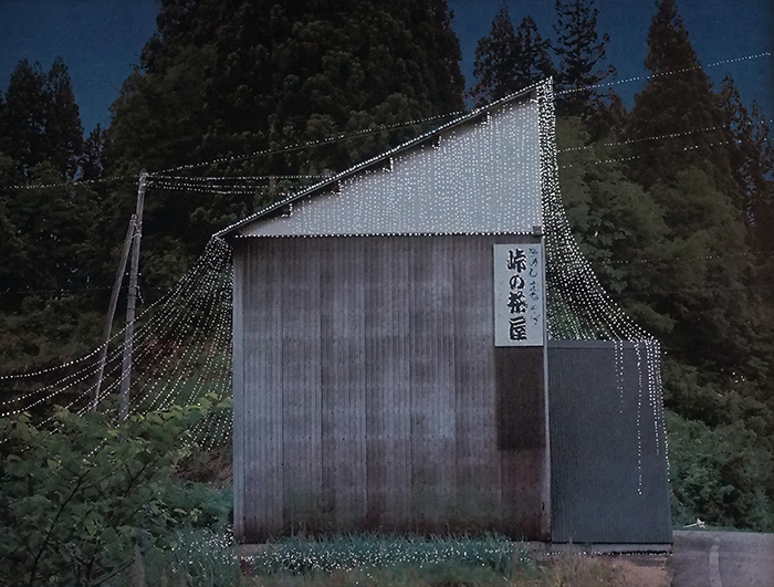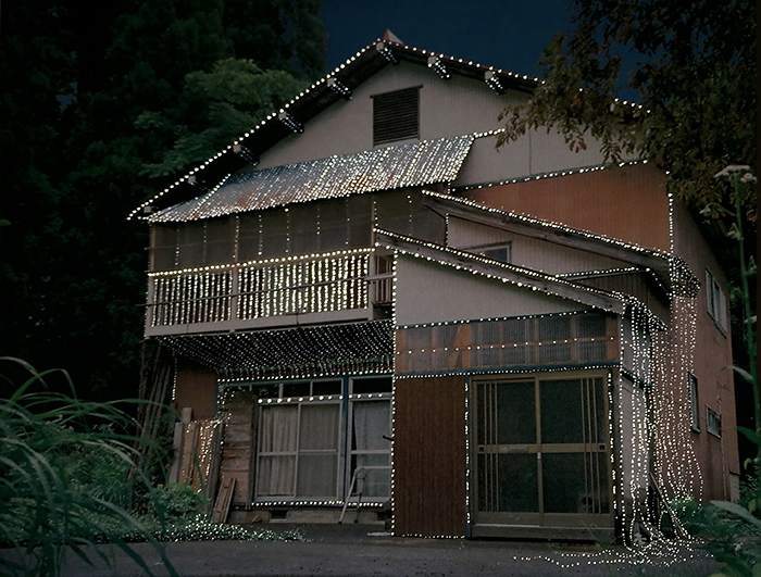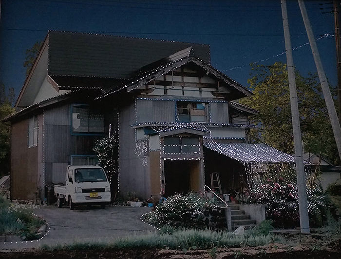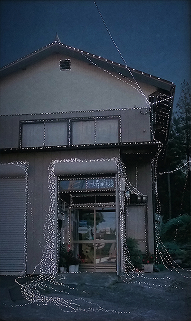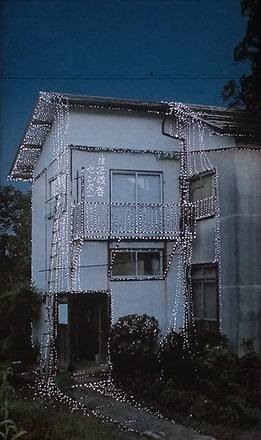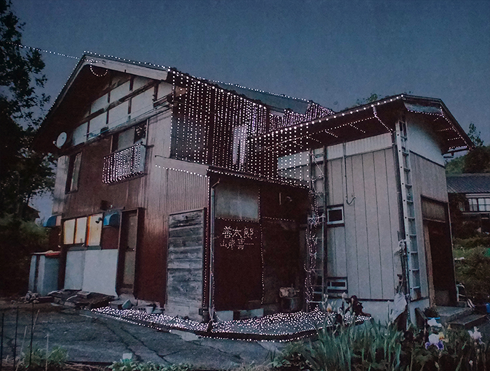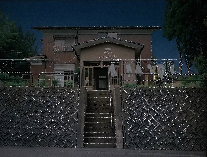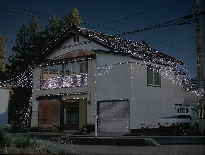 Kamou village now contains many empty houses left behind as residents moved away. I imagined a quiet festival for these vacant homes. Using a film camera, I photographed the empty houses and recorded their addresses. The images were printed, perforated, and installed over the windows of Doctor’s House. As natural light passes through the small holes, it illuminates the photographed houses from behind, as if lights were being turned on inside them.